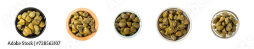 Capers in a bowl isolated on a white background. Marinated caper buds, small salted capparis in bowl, fermented food, pickled capers group.Organic spices and seasonings.