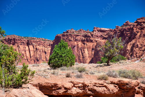 Capitol Reef National Park, Utah. Red rocks under a blue summer sky.