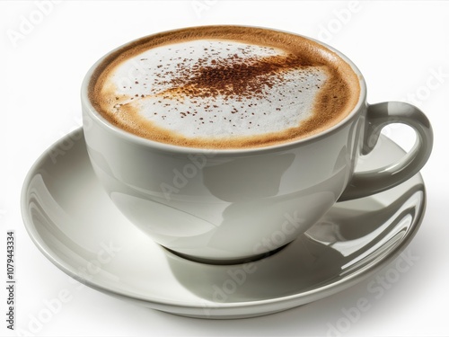 Cappuccino Perfection: A close-up shot of a steaming cup of cappuccino, adorned with a delicate dusting of cinnamon, captures the essence of warmth, comfort, and indulgence.