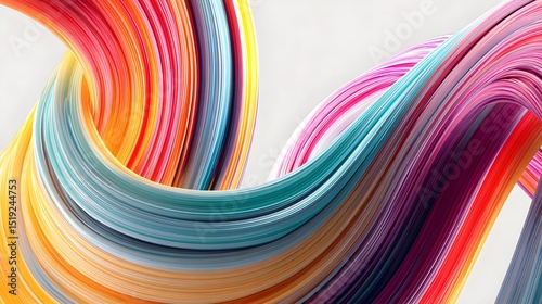 Captivating abstract composition featuring fluid undulating lines and shapes in a vivid spectrum of colors creating a dynamic and visually striking dance across the smooth white backdrop