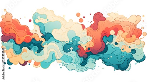Captivating abstract design featuring a dynamic composition of liquid like shapes overlapping layers and a vibrant color palette that evokes a sense of fluidity and visual interest