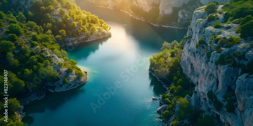 Captivating Aerial Perspective of Lush Riverside Canyon in Untouched Wilderness