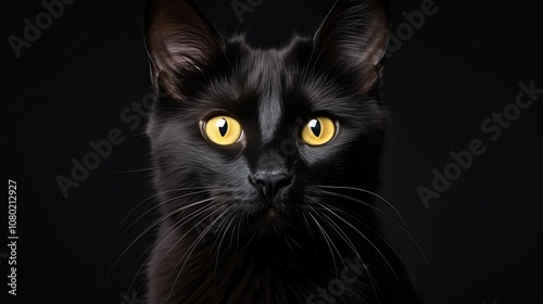 Captivating black cat with striking yellow eyes against a dark backdrop. Generative AI