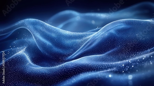 Captivating blue abstract waves illuminated by shimmering light, creating a serene atmosphere in a digital art piece