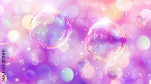 Captivating bubbles reflecting rainbows soft focus violet and rose backdrop digital art abstract close-up dreamy aesthetic