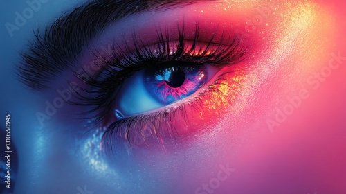 Captivating Close-up of a Human Eye with Vivid Multicolored Lighting Highlighting Texture and Detail in Modern Artistic Composition