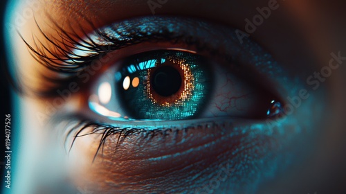 Captivating Close-Up of Human Eye with Digital and Neon Elements