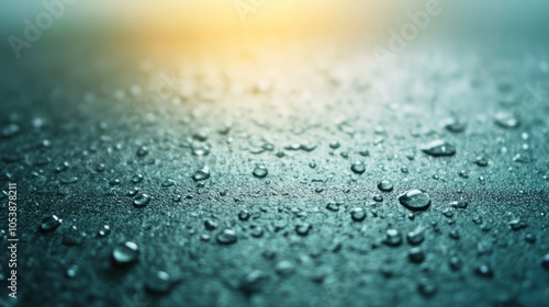 Captivating close-up of water droplets on a surface captured in soft light highlighting the beauty of nature's elements and the artistry of natural phenomena