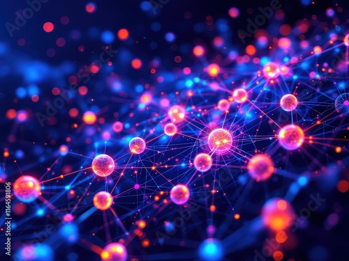Captivating cosmic dance of colors and lights brings a mesmerizing visualization of interconnected particles in a digital universe