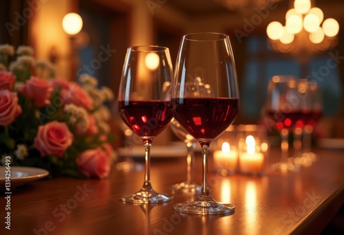 captivating deep red wine glasses showcasing elegant design curved silhouette subtle reflective surface luxurious experience, crystal, stemware, vintage