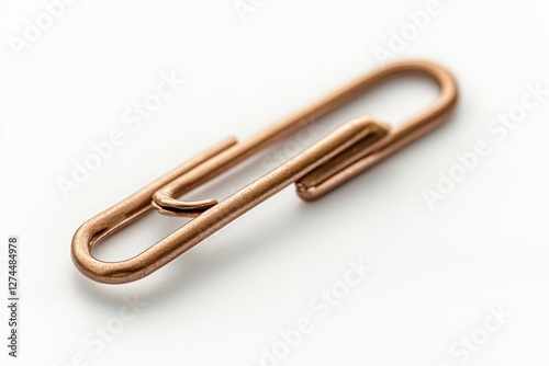 Captivating details of a copper paper clip resting on a pristine white surface in soft lighting isolated on transparent background