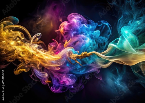 Captivating double exposure images blend photorealistic multicolored smoke with sophisticated golden accents, creating striking artistic visuals perfect for imaginative designs and creative projects.