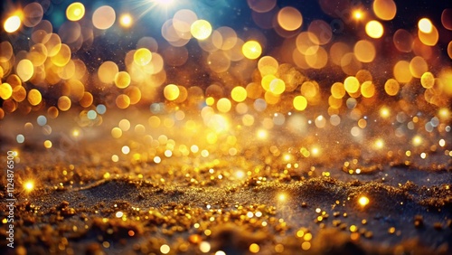 Captivating Golden Bokeh: A Stunning Abstract Background of Sparkling Lights and Glittering Glow in a Dreamy Landscape Setting