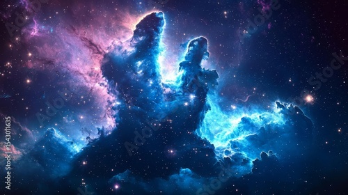Captivating panoramic view of a vibrant dark blue nebula in outer space.