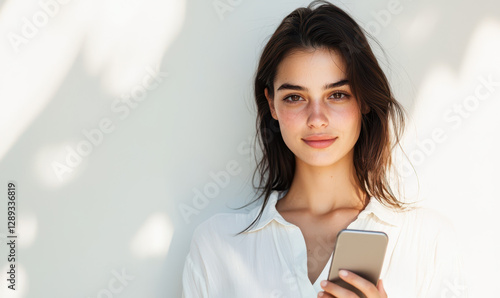 Captivating Portrait of a Young Woman Engaging with Technology in a Bright and Natural Setting, Emphasizing Modern Lifestyle and Genuine Expression