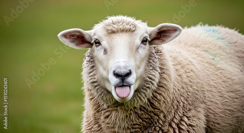 Captivating Sheep Portrait with Amusing Tongue Expression Highlighting Individual Animal Character