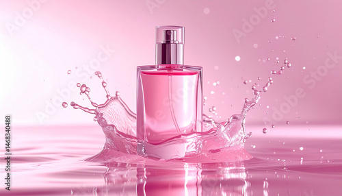 Captivating splash of pink perfume tranquil water surface product photography serene mood