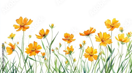 Captivating Watercolor of Vibrant Yellow Flowers in a Lush Garden Setting
