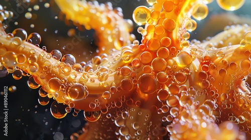 Capture a worms-eye view of Picarones glistening under a syrupy drizzle using traditional oil techniques