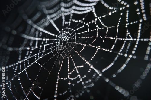 Capture the intricate symmetry of a spider's web, each strand a masterpiece of natural architecture woven with meticulous precision.