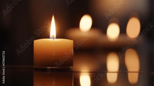 Capture the reflections of the candle flame on surrounding surfaces, showcasing the interplay of light and shadow in the candlelit environment, AI generated, background image