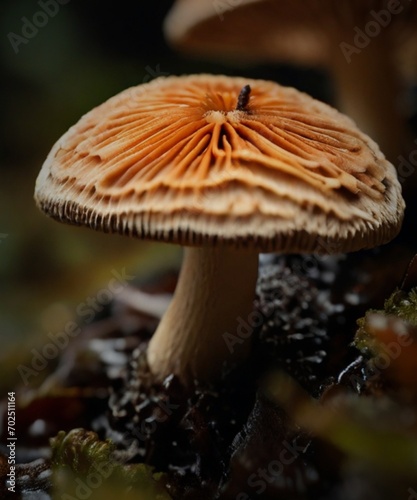 "Captured against a backdrop of fallen leaves, this mushroom stands tall, showcasing its unique shape and earthy tones amidst the woodland's tranquility."