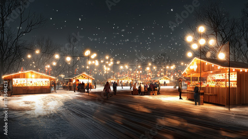Captures lively winter night bathed soft - glow various lights
