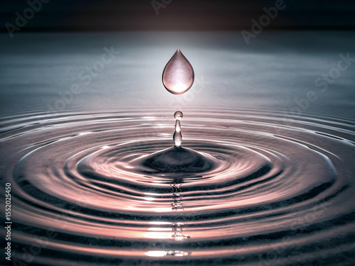 Capturing a crystal-clear blue water drop splash, this abstract macro shot shows a single liquid ripple creating a perfect circle, reflecting the clean, wet nature of falling raindrops
