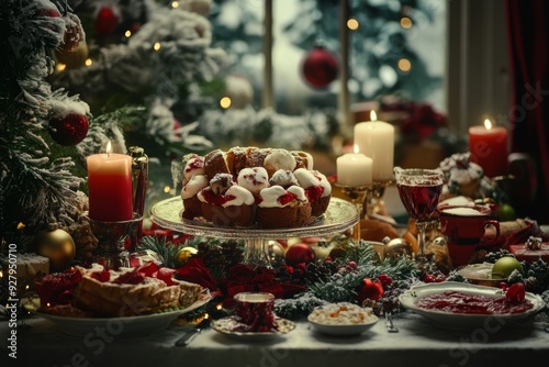 Capturing festive christmas table setting with food decorations in a beautifully composed photograph