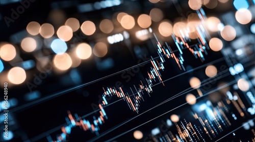 Capturing the essence of green energy, this double exposure blends stock market trends with wind turbines under a blue sky