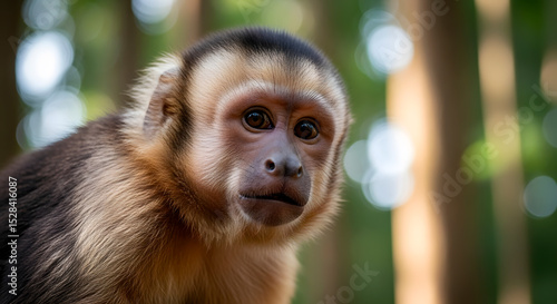 Capuchin Monkey Staring Curiously in Sunlit Forest