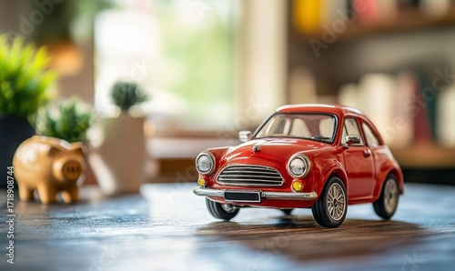 Car and piggy bank representing financial management concepts, including auto tax, insurance, and savings for future investments, Generative AI