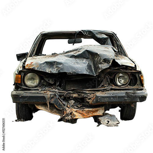 car crash wreck accident damage collision auto road traffic insurance. wreck vehicle car crush crash night repair emergency speed broken bumper street isolated injury safety scene automobile wheel
