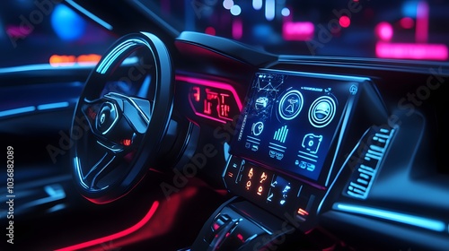 Car interior with Self driving , Auto pilot and internet of thin futuristic . icon illustration . Autonomous car system technology concept .