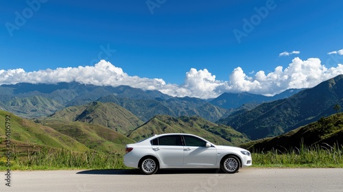 Car journey through scenic mountains outdoor landscape travel adventure summer road trip wide view nature exploration