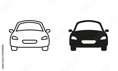 Car Line and Silhouette Black Icon Set. Classic Automotive Pictogram. Auto Vehicle Transport Outline and Solid Symbol Collection on White Background. Automobile Sign. Isolated Vector Illustration