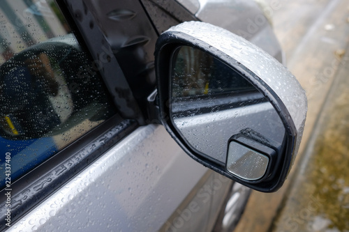 Car Mirror and Rain Drops