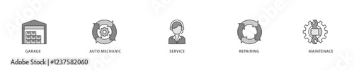 Car servicing icon set flow process which consists of repairing, maintenace, service, auto mechanic, garage icon live stroke and easy to edit .