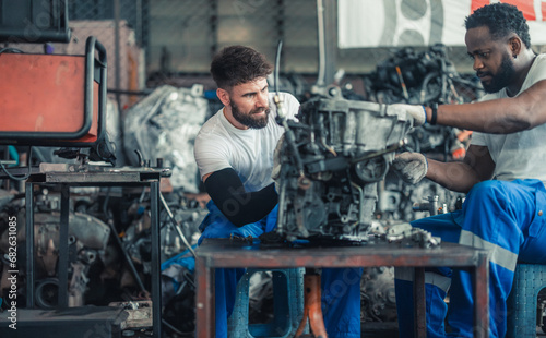 Car technician check engines, choose quality gear for precise repairs to ensure optimal performance