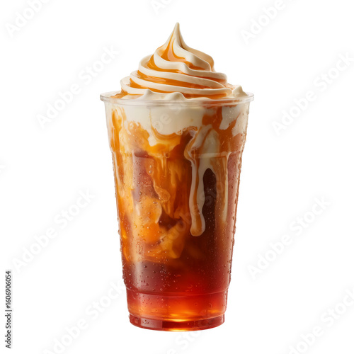 Caramel Iced Coffee with Whipped Cream, Caramel Iced Coffee with Whipped Cream transparent png, Caramel Iced Coffee with Whipped Cream blank background – Refreshing Cold Brew Dessert Drink