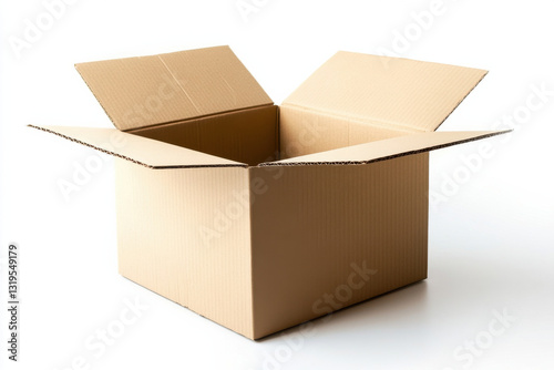 cardboard box open and isolated on white background, perfect for storage or shipping. Its simple design makes it versatile for various uses