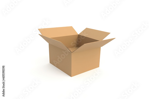 Cardboard box with opened cover isolated on white background. Created with Generative AI Technology