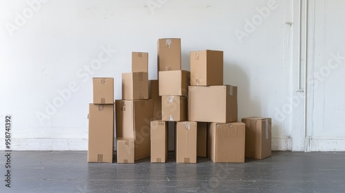 Cardboard boxes being sealed with packing tape, with a tape dispenser in focus.