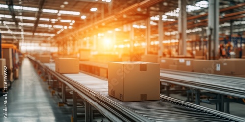 Cardboard Boxes Moving on Automated Conveyor Belt System in a Modern Distribution Warehouse