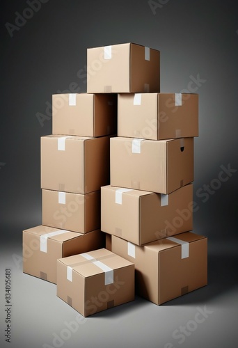 Cardboard boxes with stuff indoors, isolated white background, glossy ground and background
