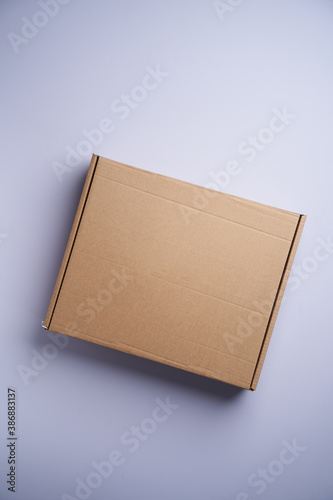 Cardboard boxon pastel color background with copy space.