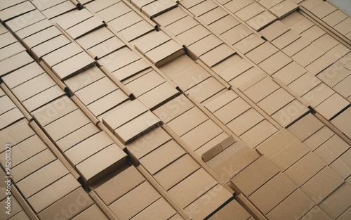 Cardboard pattern. A close-up shot of an intricate cardboard pattern, showcasing a symmetrical arrangement of rectangular boxes. This image evokes a sense of order and repetition.