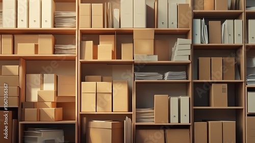 Cardboard storage and essential documents, perfectly designed for modern workplaces that blend functionality with style. A sleek 3D render illustration that balances form and utility.