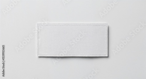 Care label patch isolated on white background, blank fabric tag, photorealistic top-down view
