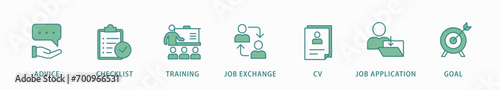 Career banner web icon vector illustration concept with icon of advice, checklist, training, job exchange, cv, job application and goal